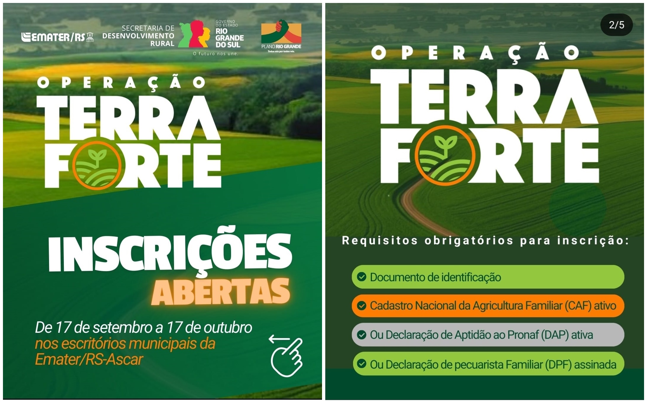 Chegou a hora de fortalecer ainda mais a agricultura familiar do nosso estado! O Governo do Estado, através da Secretaria de Desenvolvimento Rural e da Emater/RS-Ascar, anuncia a Operação Terra Forte.