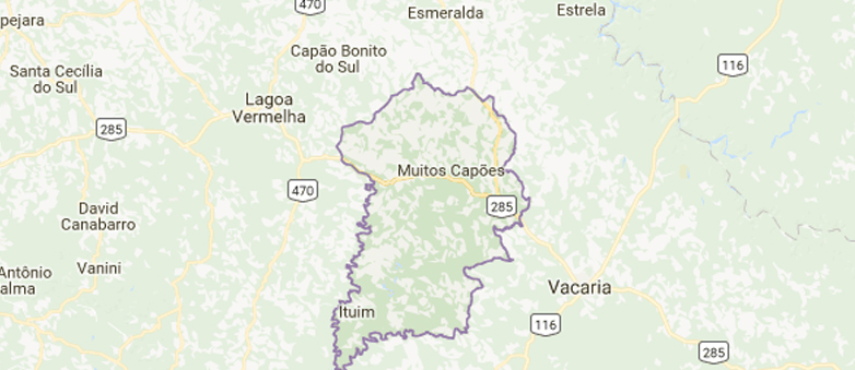 O Municipio de Muitos Capões situa-se a 35 Km de Vacaria/RS e localiza-se as margens da BR 285 na região nordeste do Estado do Rio Grande do Sul