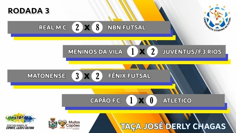 • Resultados da 3ª Rodada realizada na Sexta-Feira (24.02). • Destaque da Rodada para a liderança isolada da equipe da Juventus/Fazenda 3 Rios que até aqui venceu todos os jogos que disputou. Confira a classificação atual do campeonato.