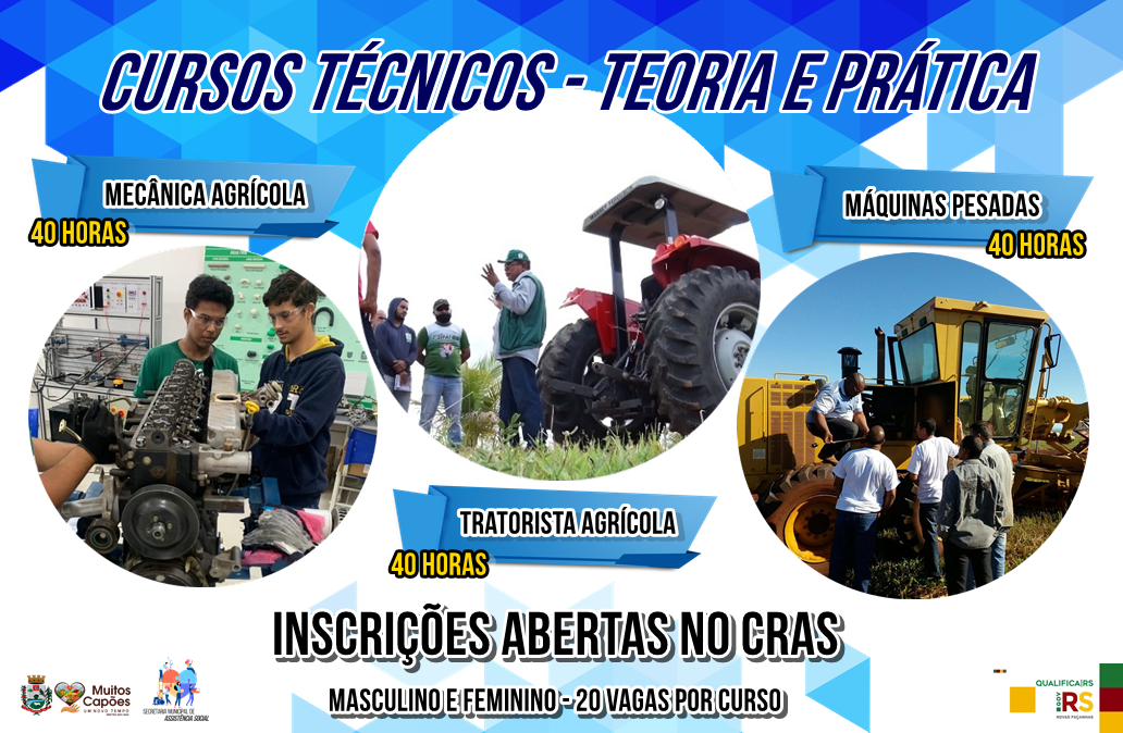 Estão abertas as inscrições para 3 cursos técnicos que serão fornecidos através da secretaria municipal da assistência social e do programa qualifica RS.