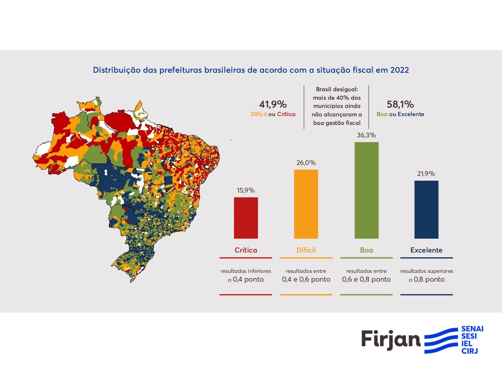O IFGF analisa dados de 2022, últimos disponíveis, e avalia as contas de 5.240 cidades, onde vive 97,1% da população brasileira1.